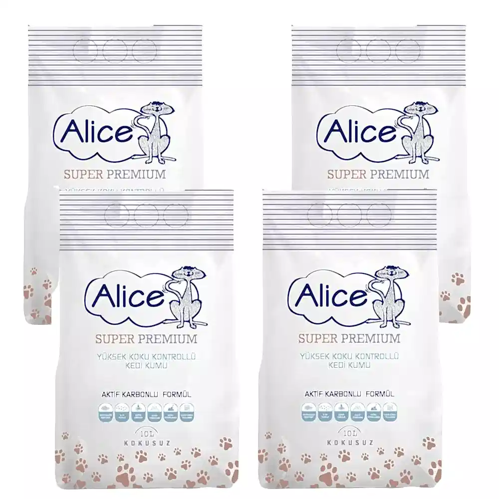 Alice Aktif Karbonlu Kedi Kumu özel bir formül ile üretilmiş, karbon taneleri bentonite serpiştirilmek yerine bentonitin içine yedirilmiştir. Koku hapsedici özelliğe sahip iki doğal madde olan bentonit ve aktif karbonun karışımından elde edilen bu kedi kumunda koku emilimi ve etkililiği iki kat arttırılmıştır.