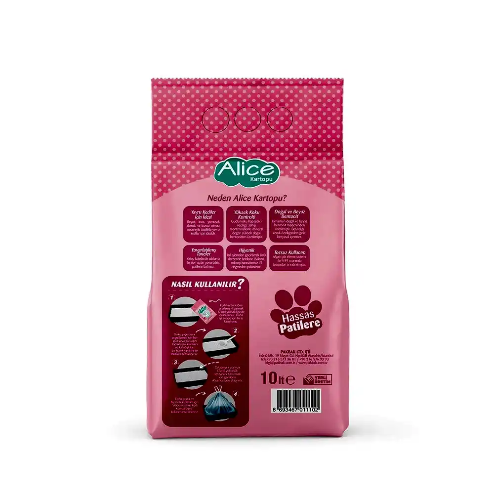 Alice Kartopu İnce ve Beyaz Taneli Topaklaşan Pudra Kokulu Kedi Kumu 10 lt.
