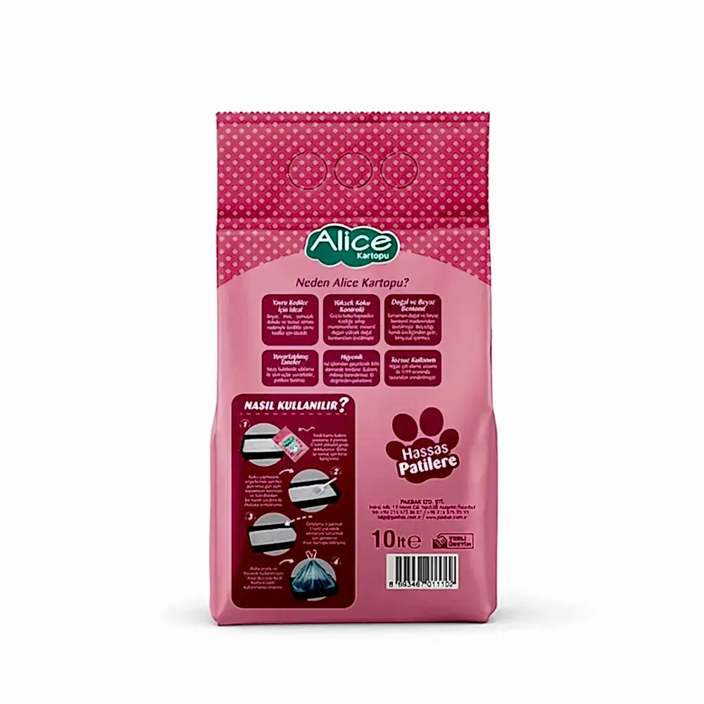 Daha hijyenik ve pratik bir kullanım için ”Alice Büzgülü Kedi Kumu Poşeti” kullanmanızı öneririz.