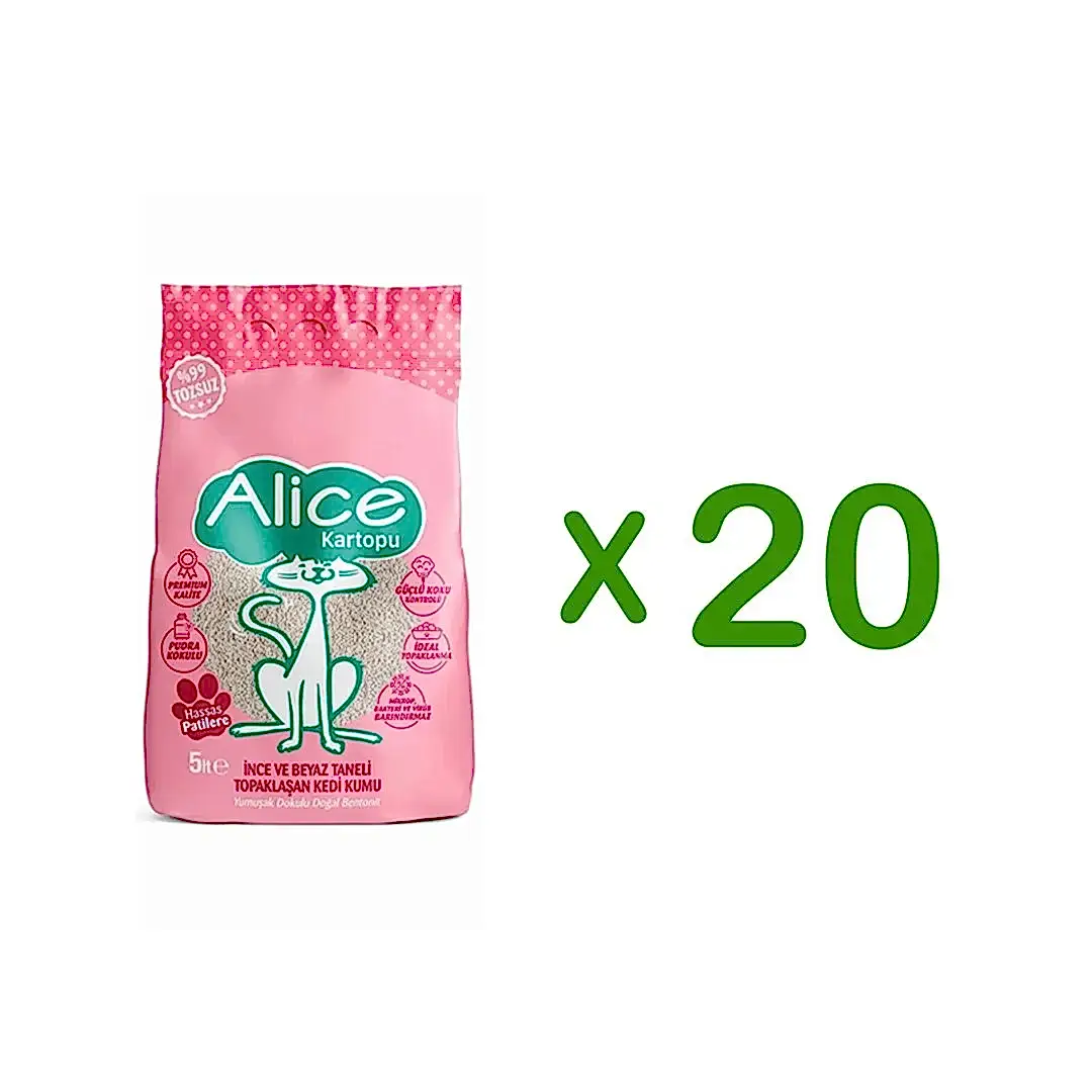 Alice İnce ve Beyaz Taneli Topaklaşan Pudra Kokulu Kedi Kumu 20×5 lt. (GEL-AL ÜRÜNÜDÜR, KARGOLANMAZ)
