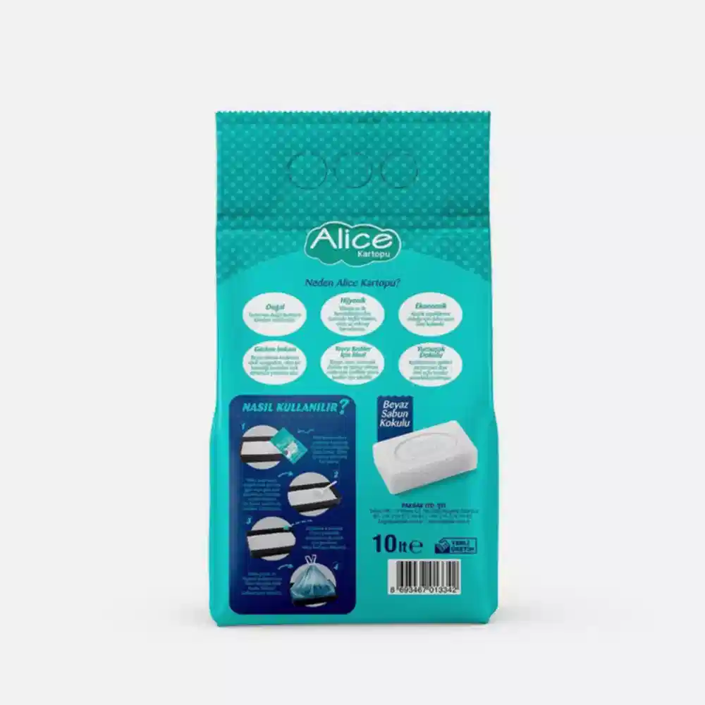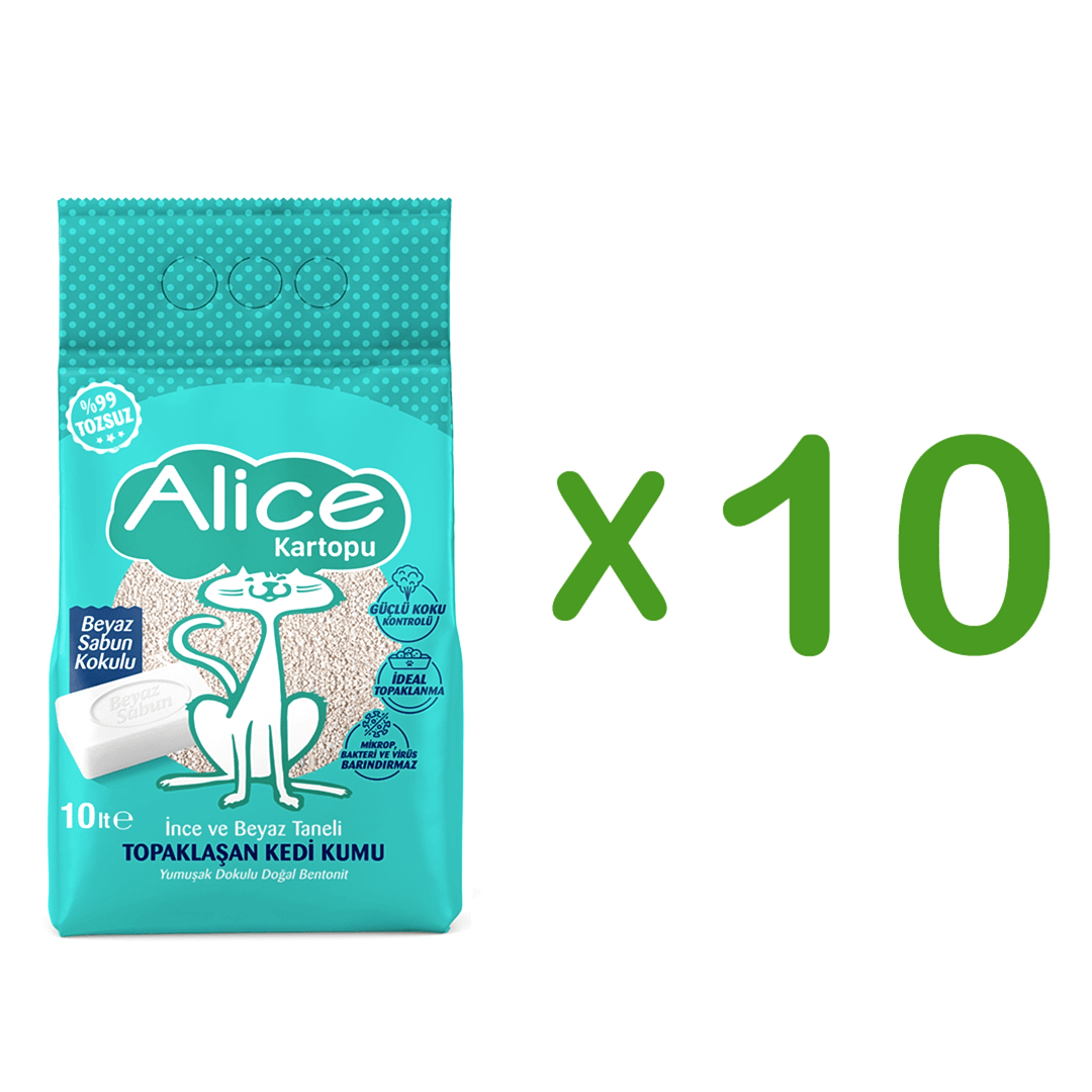 Alice Kartopu İnce Taneli Kedi Kumu/Beyaz Sabun Kokulu 10×10 lt – 10 Adet – 100 kg