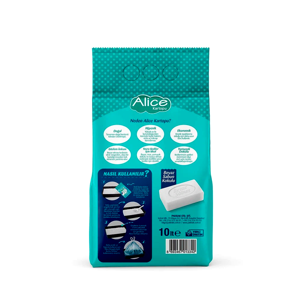 Alice Kartopu İnce Taneli Kedi Kumu- Beyaz Sabun Kokulu