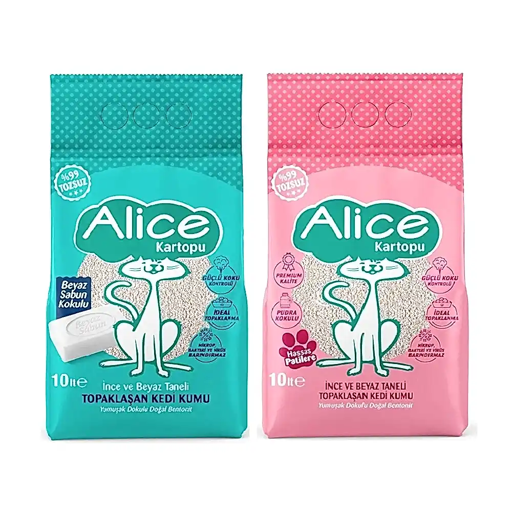 Alice Kartopu Topaklaşan İnce Taneli Pudra ve Sabun Kokulu Kedi Kumu