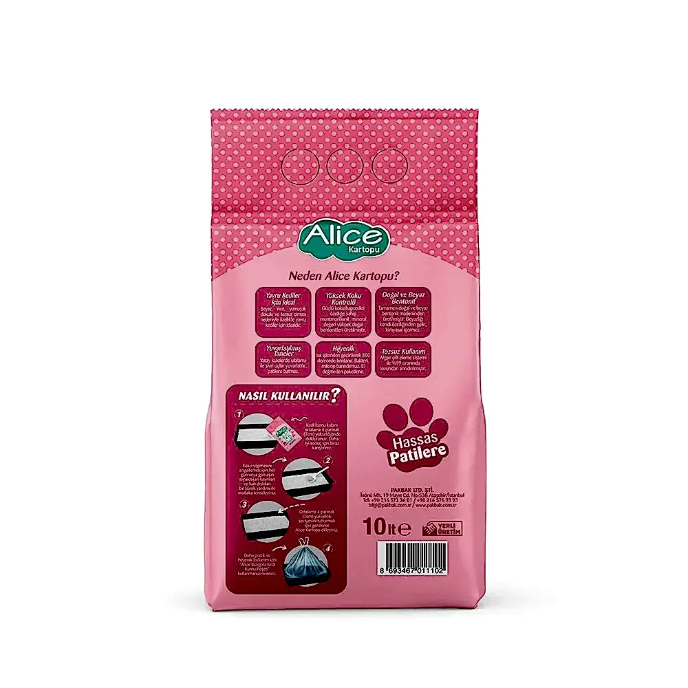 Alice Kartopu İnce Taneli Topaklaşan Pudra Kokulu Kedi Kumu Kullanma Talimatı: