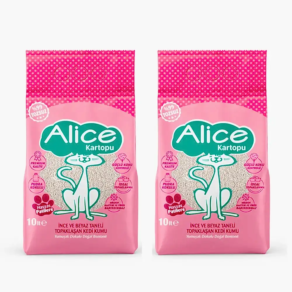 Alice Kartopu İnce ve Beyaz Taneli Pudra Kokulu Kedi Kumu 2×10 lt.