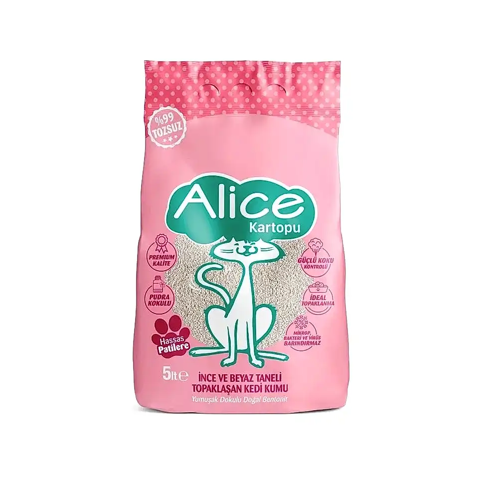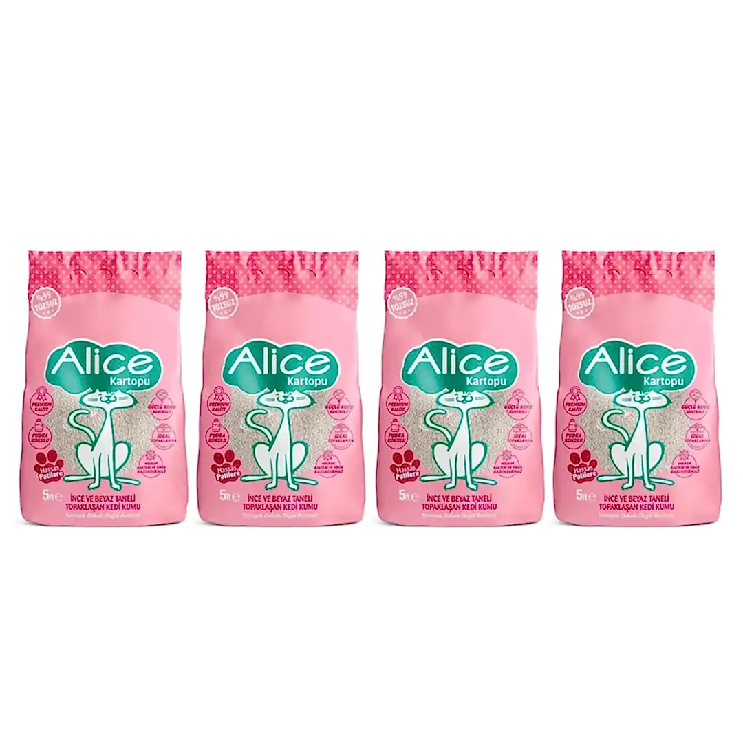 Alice Kartopu Topaklaşan İnce Taneli Kedi Kumu Pudra Kokulu 4×5 Lt