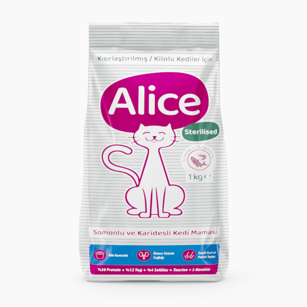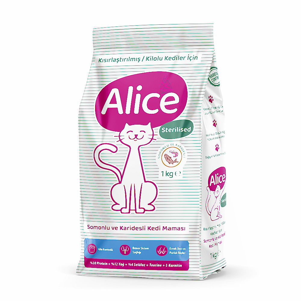 Alice Light & Sterilised – Kısırlaştırılmış / Kilolu Kediler İçin Super Premium Mama Somonlu Karidesli 3×1 kg