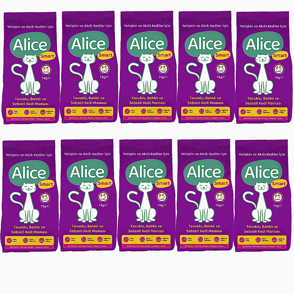 Alice Smart Balıklı, Tavuklu, Sebzeli Besleyici Kedi Maması 1 kg x 10 Adet Fırsatı !