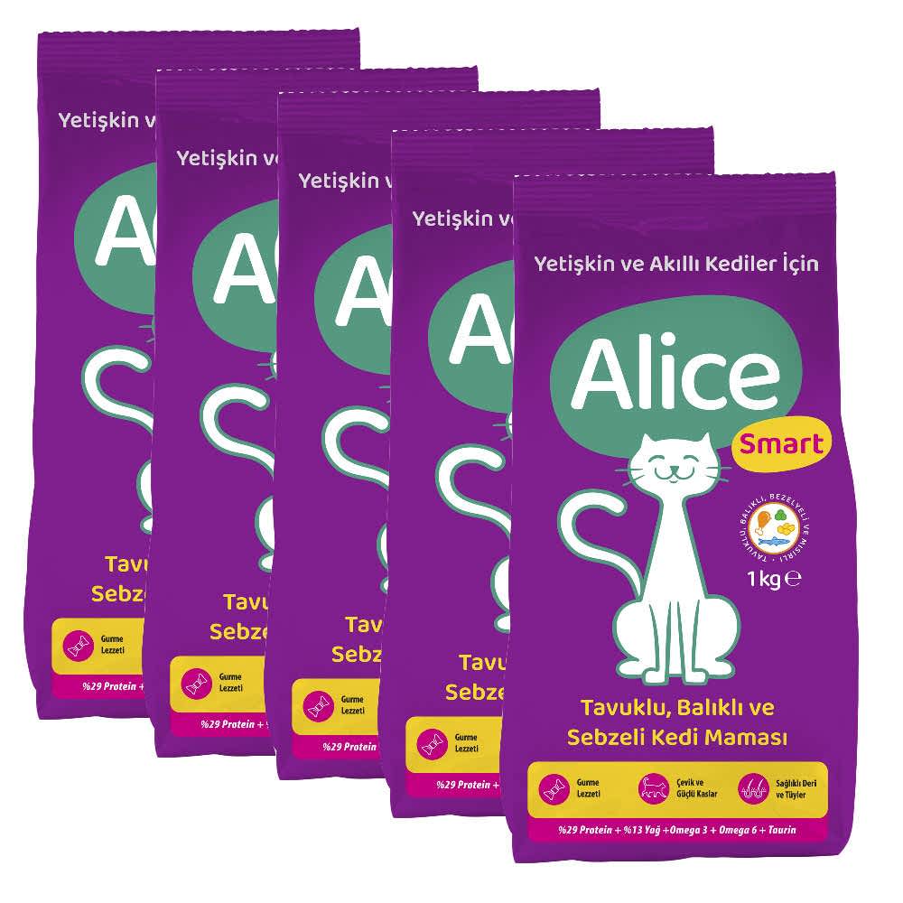 Alice Smart Balıklı, Tavuklu, Sebzeli Besleyici Kedi Maması 1 kg x 5 Adet Fırsatı !