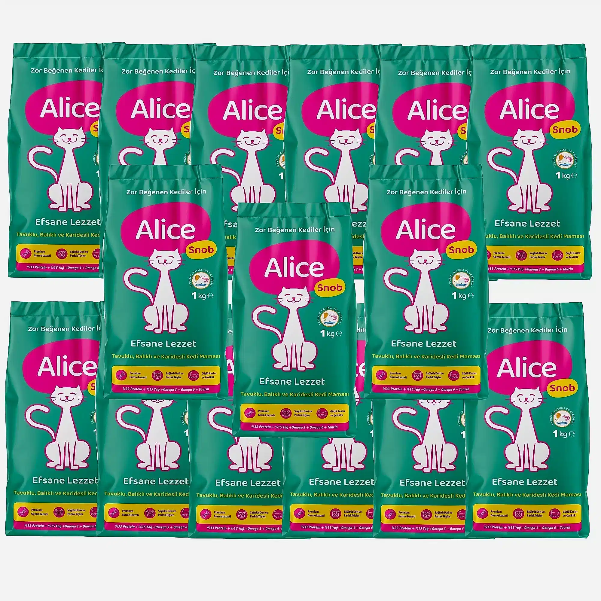 Alice Snob Kedi Maması 1kg x15 + Kedi Çimi Hediyeli