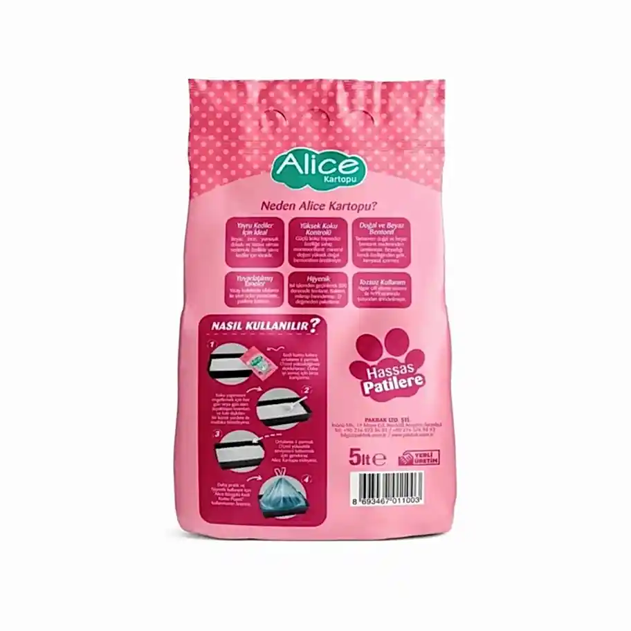 Daha hijyenik ve pratik bir kullanım için ”Alice Büzgülü Kedi Kumu Poşeti” kullanmanızı öneririz.